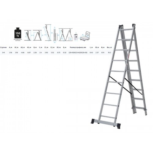 Алюминиевая стяжка создаёт жёсткий треугольник и фиксирует рабочее положение (для лестниц 3?15-3?17).